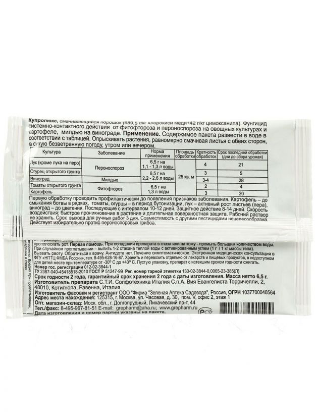 Фунгицид Купролюкс, универсальный для защиты растений, 6.5 г, порошок, Зеленая аптека Садовода