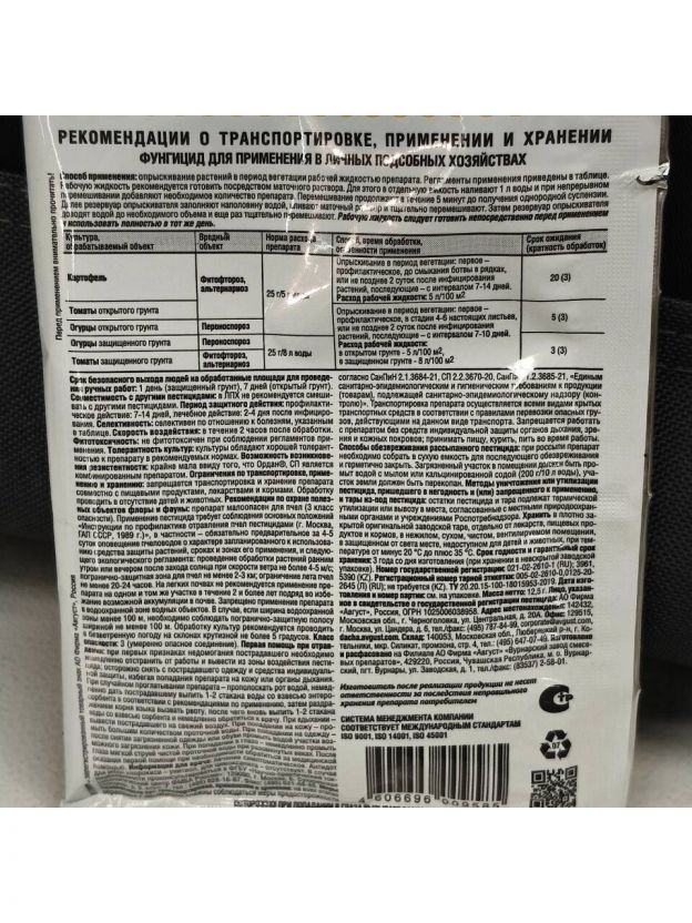 - Действующее вещество: 689 г/кг меди хлорокиси + 42 г/кг цимоксанила.