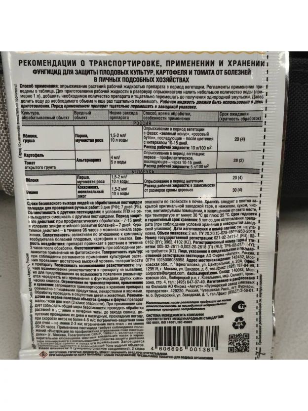 • Быстро проникает в ткани растений и не смывается дождем уже через 2 часа после опрыскивания.