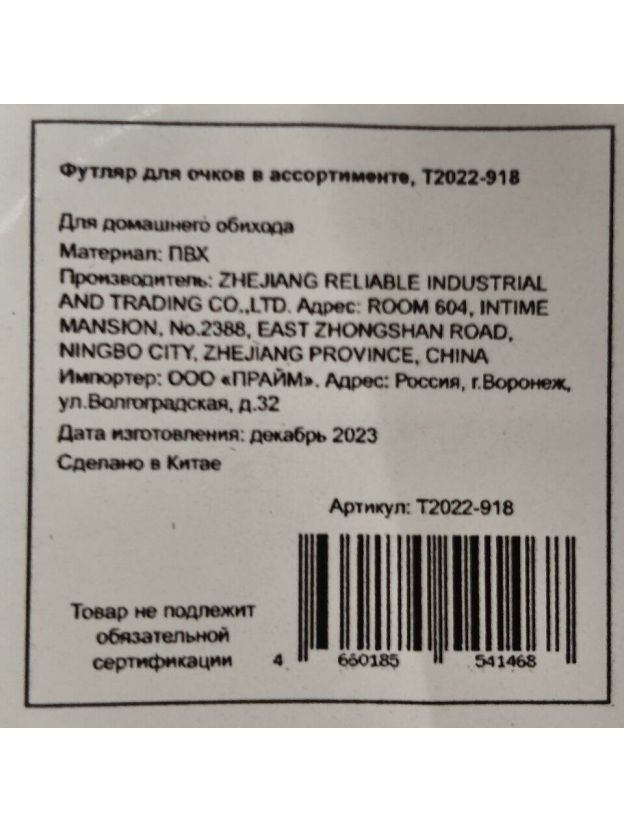 Футляр для очков 16х6х4 см, в ассортименте, T2022-918, в ассортименте