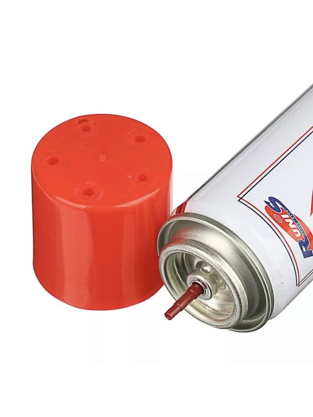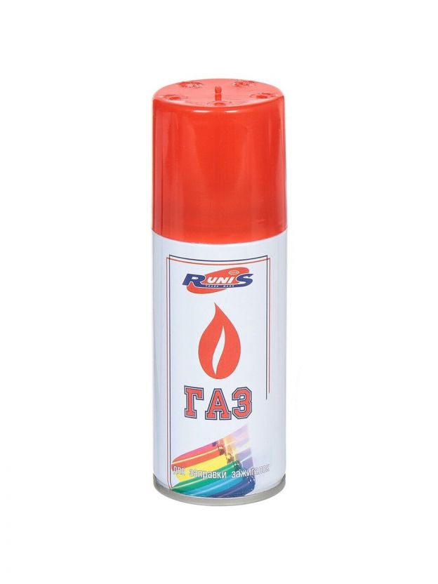 Газовый баллон, позволяет заправлять различные модели зажигалок, а также использовать газ для портативных газовых приборов, например, обогревателей, паяльных ламп, светильников, газовых плиток и прочих нагревательных приборов.