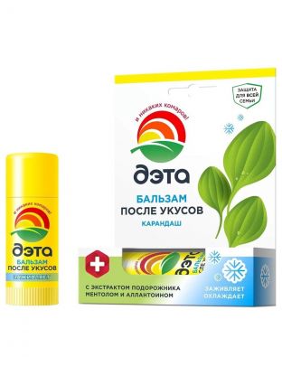 Бальзам эффективно снимает зуд и болевые ощущения после укусов насекомых, ожогов крапивы и медуз. Уменьшает отечность, способствует исчезновению покраснения.