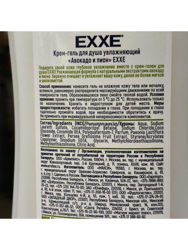 Гель для душа Exxe, Авокадо и пион, 400 мл