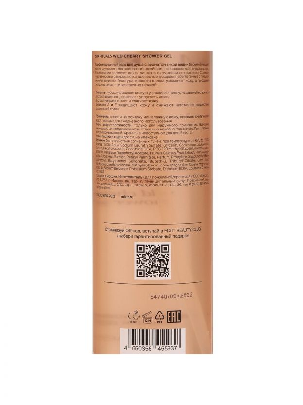 Гель для душа Mixit, Дикая вишня, 500 мл, парфюмированный, женский