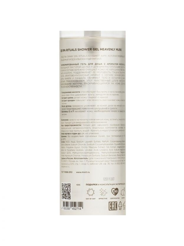 Парфюмированный гель с изысканным мускусом — ощущение роскоши и ухода как в спа-салоне.