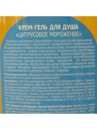 Способ применения: небольшое количество геля нанести на губку или влажную кожу, вспенить, помассировать тело, затем тщательно смыть водой.
