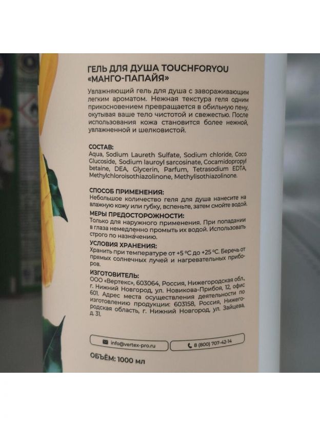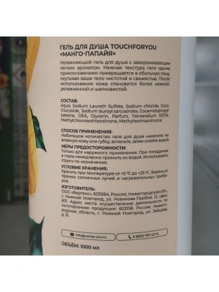 Гель для душа Touch For You, Манго-папайя, 1 л, парфюмированный