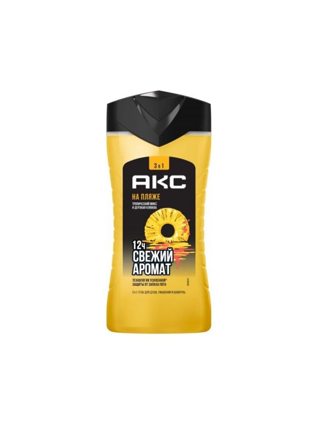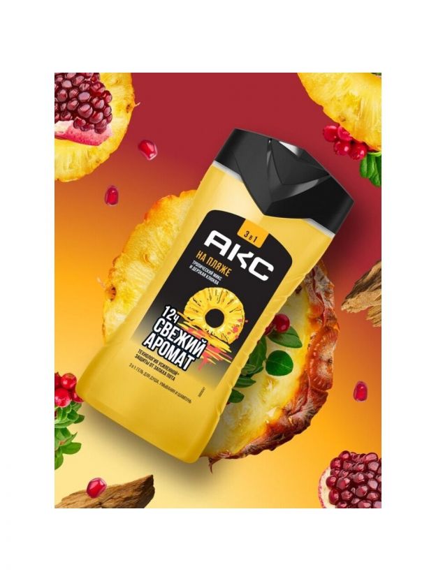 Гель для душа и шампунь АКС, На пляже 3в1, для мужчин, 250 мл