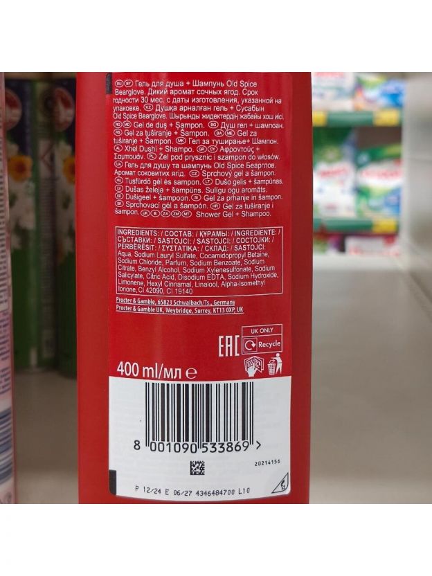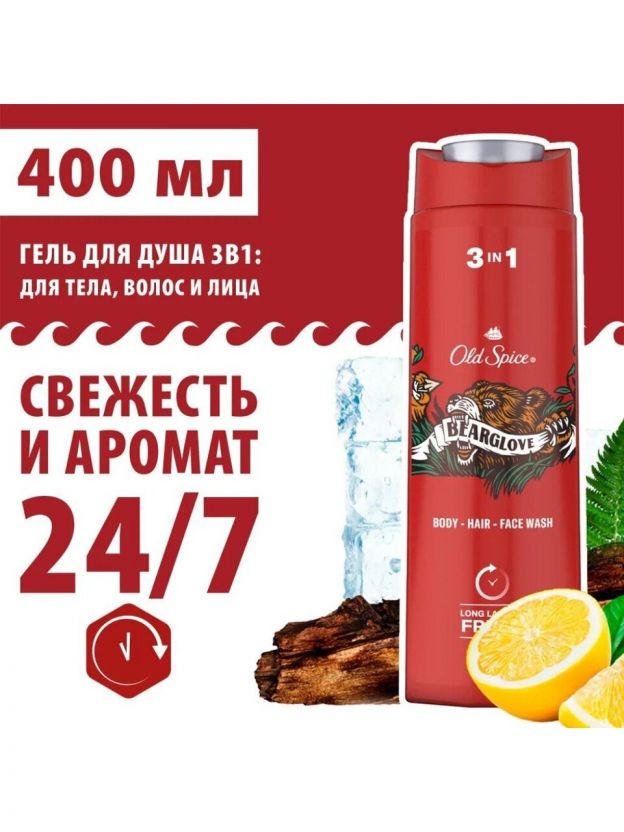 Гель для душа и шампунь Old Spice, 3 в 1 Bearglove, для мужчин, 400 мл