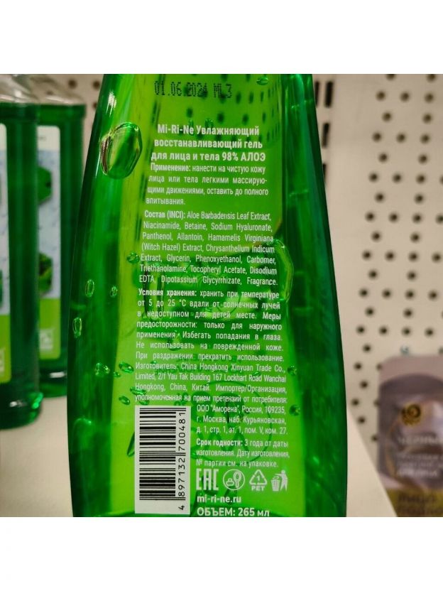 Гель для лица и тела, Mi-Ri-Ne, увлажнение, восстановление, 265 мл