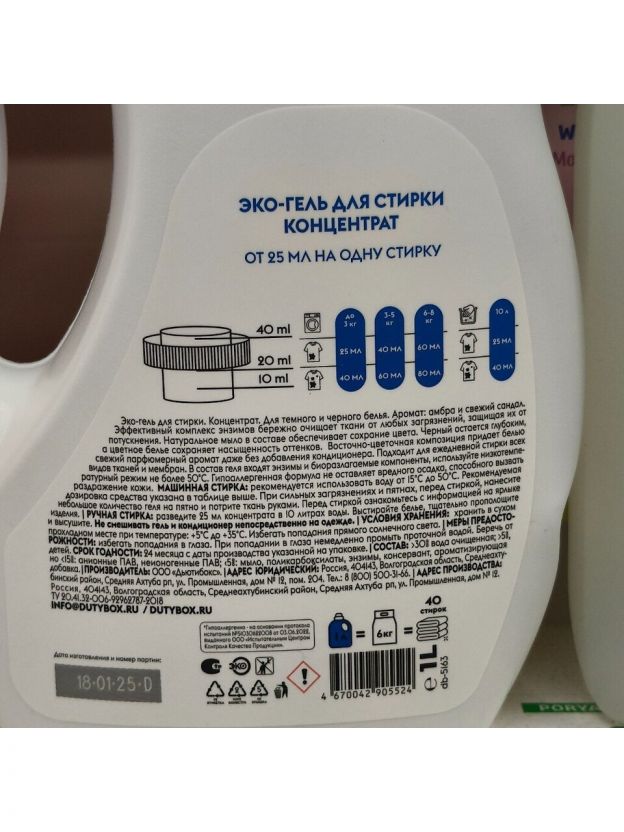 Гель для стирки Dutybox, 1 л, для черного белья, Эко