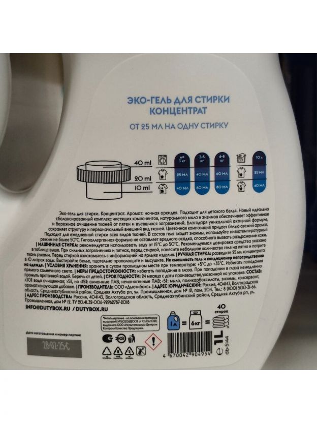 Гель для стирки Dutybox, 1 л, универсальный, Эко, Ночная орхидея