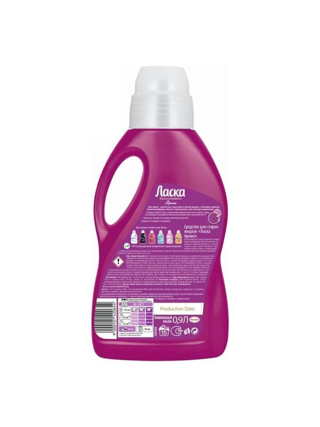 Жидкий порошок Ласка Восстановление АРОМА для цветного эффективно и бережно отстирывает загрязнения на одежде и белье, окутывая вещи неповторимым утончённым ароматом. В отличие от обычного стирального порошка, Ласка содержит специальные цветозащитные ингредиенты, которые поддерживают первозданную красоту и обеспечивают стойкость цвета вашей одежды. Активные компоненты способствуют уменьшению количества катышков на ткани.