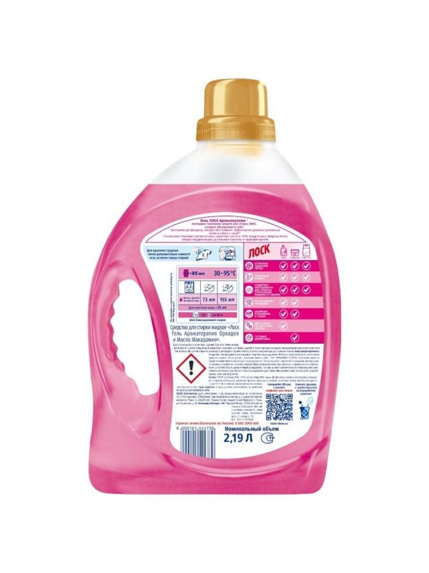Гель для стирки Лоск, 2.19 л, для цветного и белого белья, Ароматерапия эфирные масла орхидея и масло макадамии