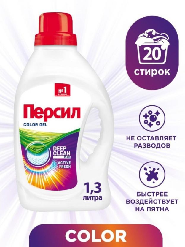 Жидкое средство для стирки Персил Color для цветного белья подарит вещам сияющую чистоту и свежесть. Гель Persil содержит активную формулу Deep Clean Plus с 13 компонентами, которая обеспечивает непревзойденный результат стирки.