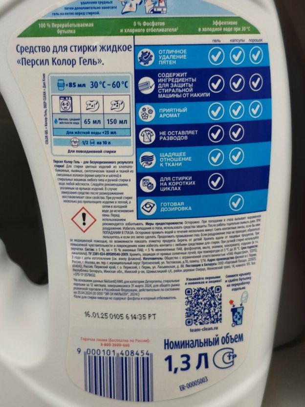 Для стирки цветных изделий из хлопчатобумажных, льняных, синтетических тканей и тканей из смешанных волокон в стиральных машинах-автоматах и ручной стирки в воде любой жесткости. Для изделий из шерсти и шелка используйте специальные моющие средства.