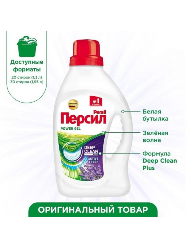 Жидкое средство для стирки Персил Лаванда с формулой Deep Clean Plus подарит вашему белью длительную свежесть лаванды.