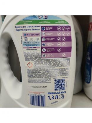 Гель для стирки Персил, 1.3 л, для цветного и светлого белья, Лаванда