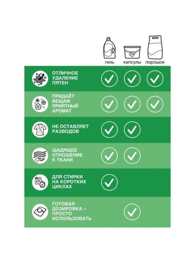 Глубоко проникает в волокна ткани и отстирывает даже самые сложные пятна.