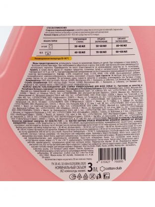 Объем канистры — 3 литра. Этого хватает примерно на 60 стандартных стирок, что делает покупку особенно выгодной для семьи или дачи.