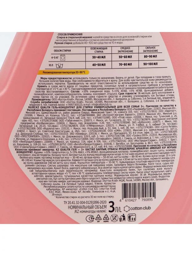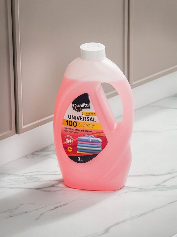 Гель для стирки Qualita 3 л — экономия до 60% на каждой стирке: универсальный состав без фосфатов для ярких и чистых вещей даже в холодной воде.