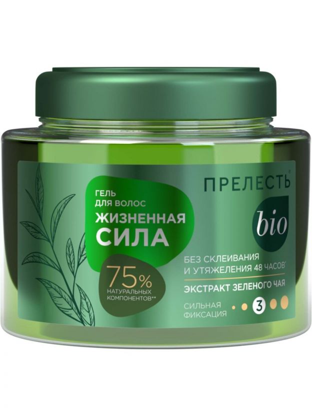 Гель для укладки волос Прелесть Био, Жизненная сила, сильная фиксация, 250 мл, с экстрактом зеленого чая