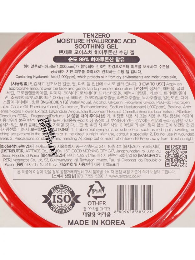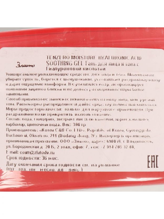 Гель-эссенция для лица и тела, Tenzero, Moisture Hyaluronic Acid Soothing, увлажнение, для всех типов кожи, 300 мл, с гиалуроновой кислотой