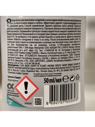 Гель-очиститель для всех видов спортивной обуви Silver разработан для кроссовок и изделий из всех видов комбинированных материалов и цветов, за исключением замши и нубука. Эффективно удаляет трудновыводимые пятна без изменения цвета. Характеристики: Объем: 50 мл; Бесцветный; Страна производства: Турция; Способ применения: удалите крупную грязь щеткой. Поверните колесико и аккуратно смажьте поверхность. Протрите грязную пену влажной салфеткой и дайте высохнуть. Промывайте губчатую головку водой после каждого применения.