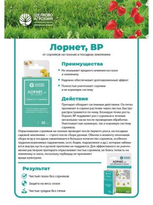 Ищете эффективное средство для борьбы с сорняками на землянике? Гербицид Лорнет, 3 мл, от Щелково Агрохим станет вашим надежным помощником в этом деле. Это средство от сорняков обладает высокой селективностью к защищаемым культурам, что делает его идеальным для сохранения здоровья вашей земляники.