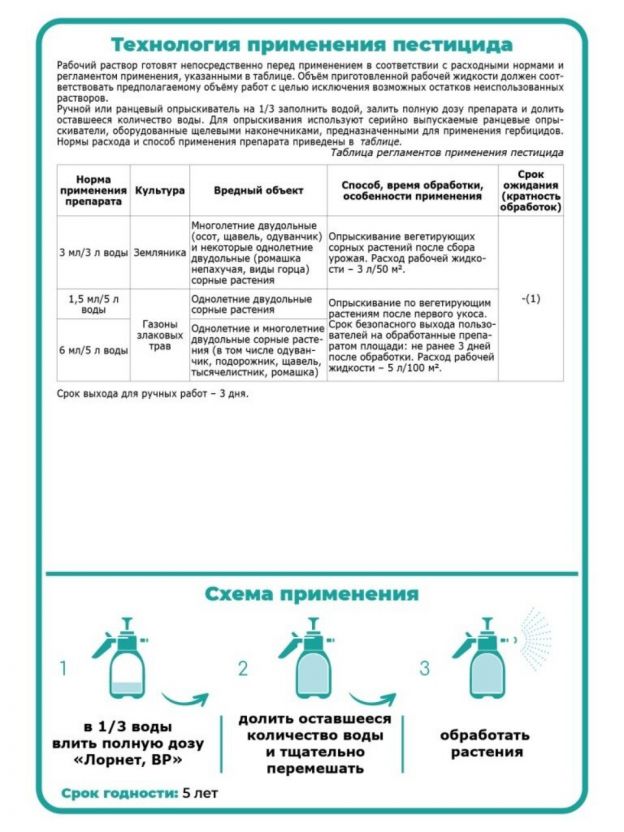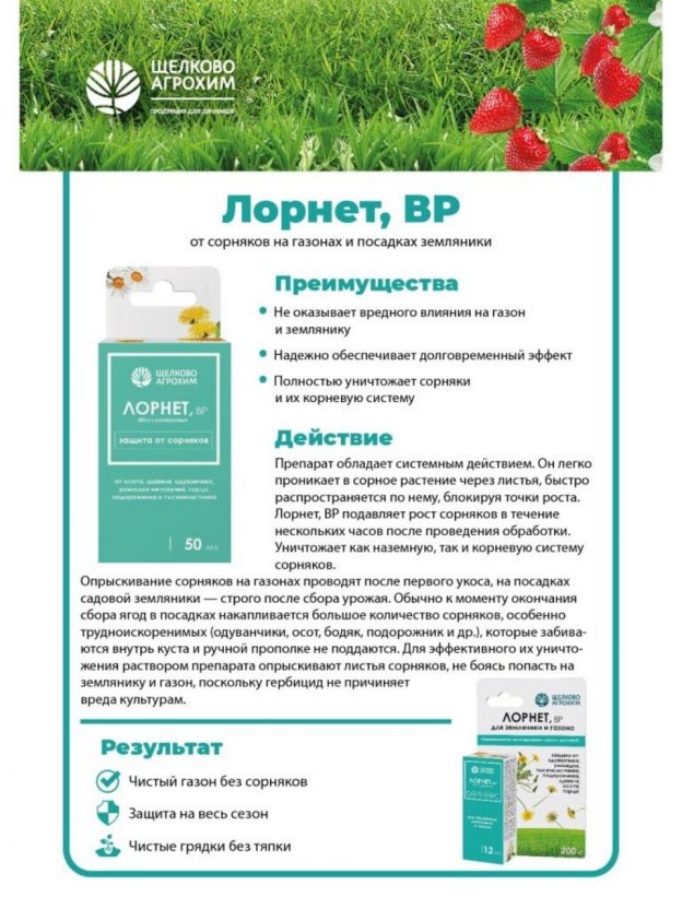 Покупка гербицида Лорнет позволит вам сэкономить время и силы, обеспечивая чистоту и здоровье вашего участка. Оцените простоту и удобство использования этого средства для борьбы с сорняками и наслаждайтесь ухоженной земляникой без лишних усилий.