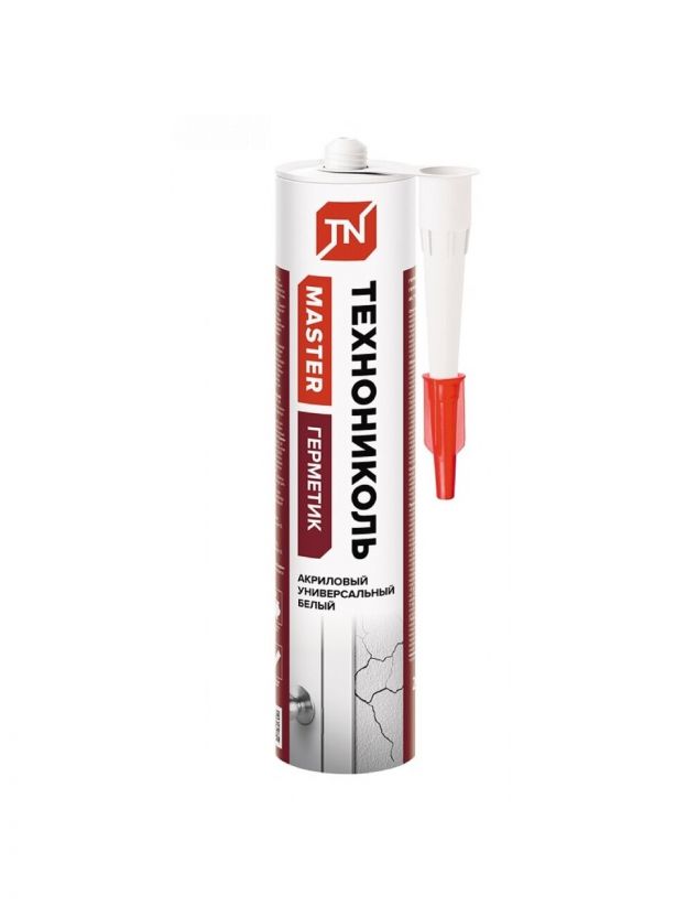 Герметик Технониколь универсальный акриловый – однокомпонентная уплотнительная масса на основе водной акриловой дисперсии для внутренних работ (для внешних применений в малоподвижных соединениях, для мест не подверженных длительному воздействию воды). Предназначается для заполнения швов между пористыми поверхностями с максимальной подвижностью до 12,5%. Проявляет замечательную адгезию к бетону, штукатурке, кирпичу, дереву, металлу и другим минеральным материалам. Герметик применяется для герметизации швов между дверными коробками или оконными рамами из древесины и пластика и корпусом здания. Для закрытия трещин, при ремонте фасадов, кирпичных кладок, штукатурок, для заполнения швов между бревнами и брусом, ремонта фасадов, кладки, штукатурки и деревянных поверхностей, а также для обработки материалов с пониженной прочностью (напр., пенобетона и стройматериалов на гипсовой основе). После высыхания может окрашиваться стандартными дисперсионными красками. Универсальный акриловый герметик для внутренних работ (для внешних применений в малоподвижных соединениях, для мест не подверженных длительному воздействию воды).