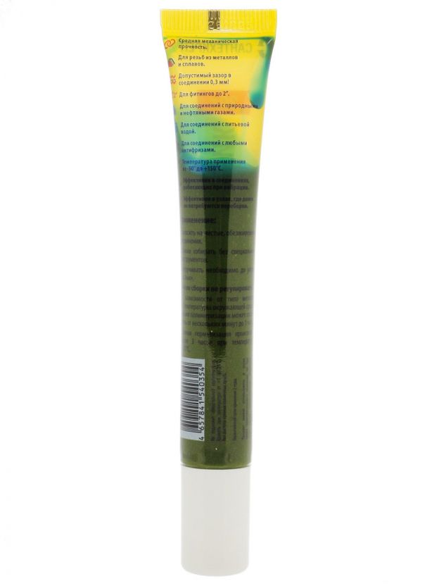 Герметик рассчитан на зазоры до 0,3 мм, идеально подходит для резьбовых соединений с диаметром до 2 дюймов. Упаковка — удобная туба 20 г с носиком для точного нанесения.