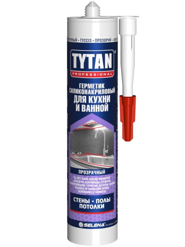 Герметик силикон-акриловый, для кухни и ванной, Tytan, 16142, 280 мл, бесцветный