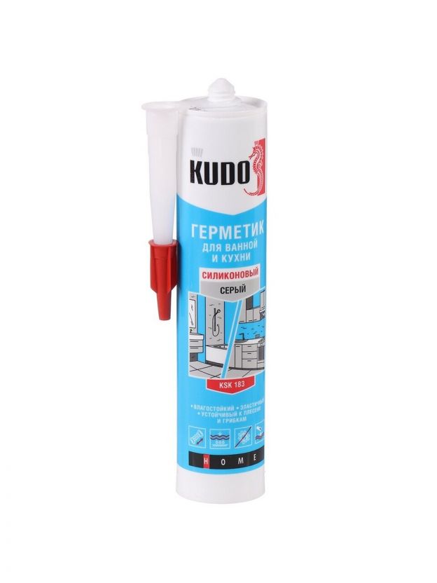Герметик силиконовый, для ванной и кухни, KUDO, KSK-183, 280 мл, серый