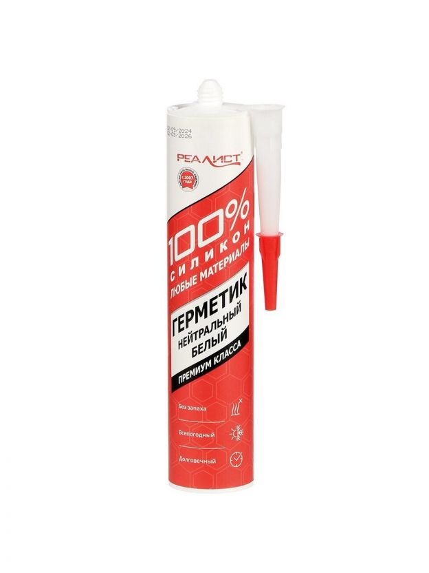 Герметик силиконовый нейтральный REALIST PRO — надежное решение для герметизации и ремонта в доме и на даче. Подходит для работы с гипсом, металлом, пластиком, поликарбонатом, стеклом, деревом, бетоном, известковым ратвором, волокнистым цементом. Идеален для внутренних и наружных работ, обеспечивает прочное и долговечное соединение. Благодаря нейтральной формуле безопасен для различных поверхностей.