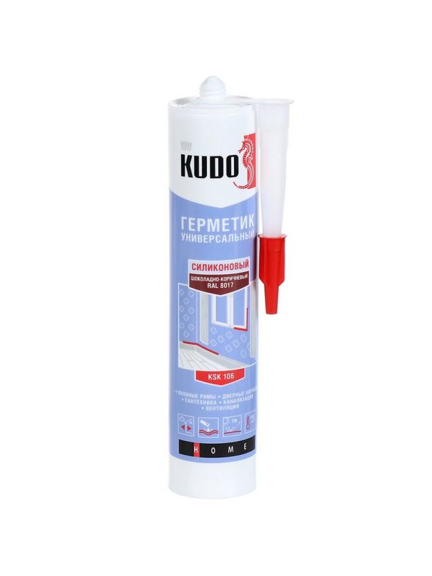 Высококачественный универсальный силиконовый герметик KUDO с системой отверждения ацетокси применяется в общих бытовых, ремонтных и строительных работах. Предназначен для уплотнения, соединения и защиты непористых поверхностей от проникновения воздуха и влаги; для герметизации оконных рам, дверных коробок, кабельных каналов; герметизации стыков при монтаже сантехнического оборудования, систем кондиционирования воздуха; защиты полиуретановой монтажной пены от УФ-лучей.