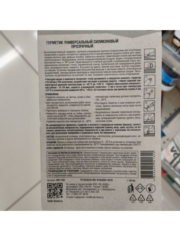 Герметик силиконовый, универсальный, KUDO, KST-100b, 85 мл, бесцветный