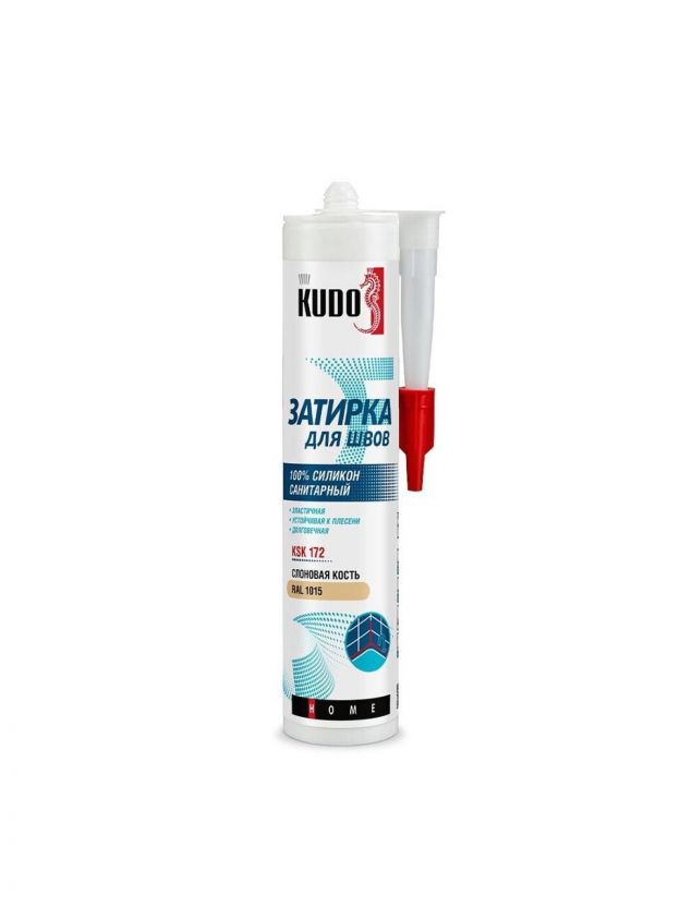 Герметик-затирка силиконовый, санитарный, KUDO, HOME KSK-172, RAL 1015, 280 мл, слоновая кость