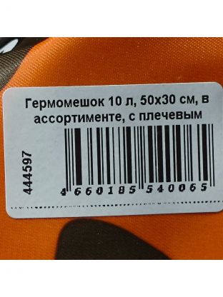 Гермомешок 10 л, 50х30 см, в ассортименте, с плечевым ремнем, T2023-039