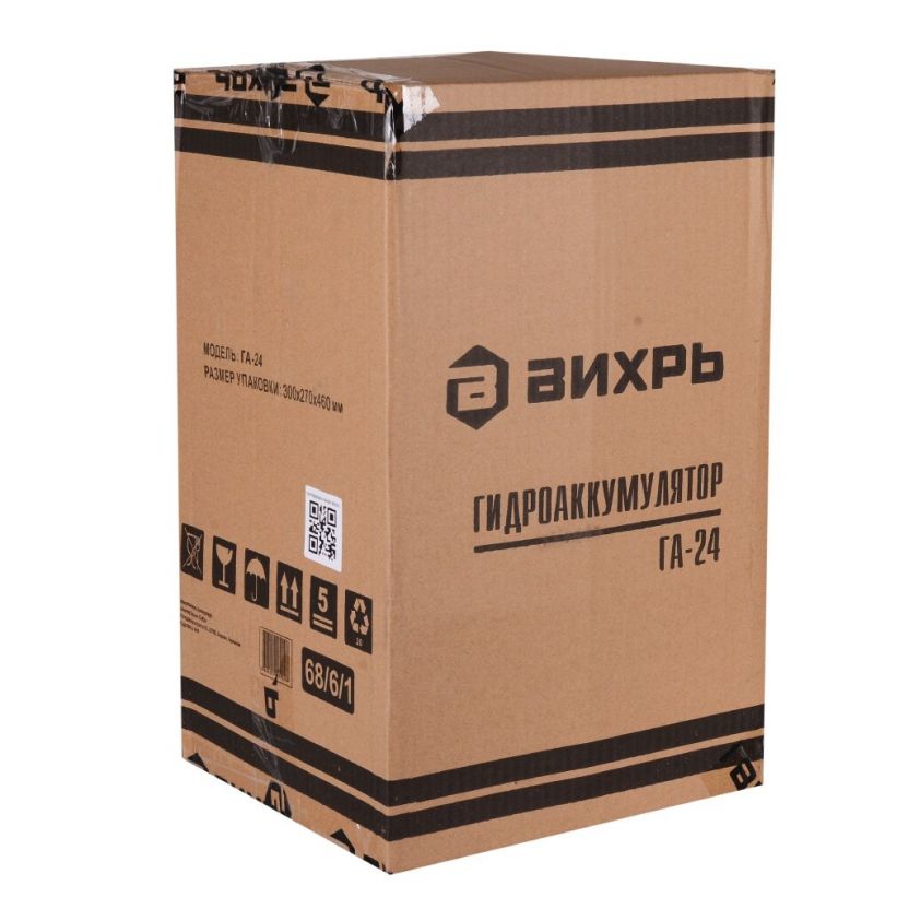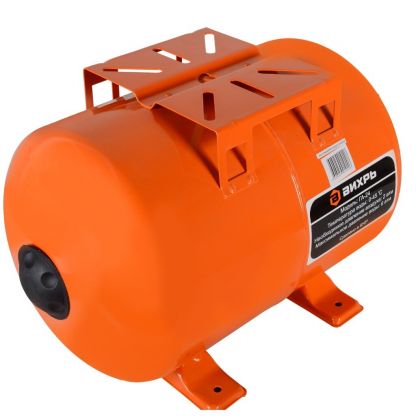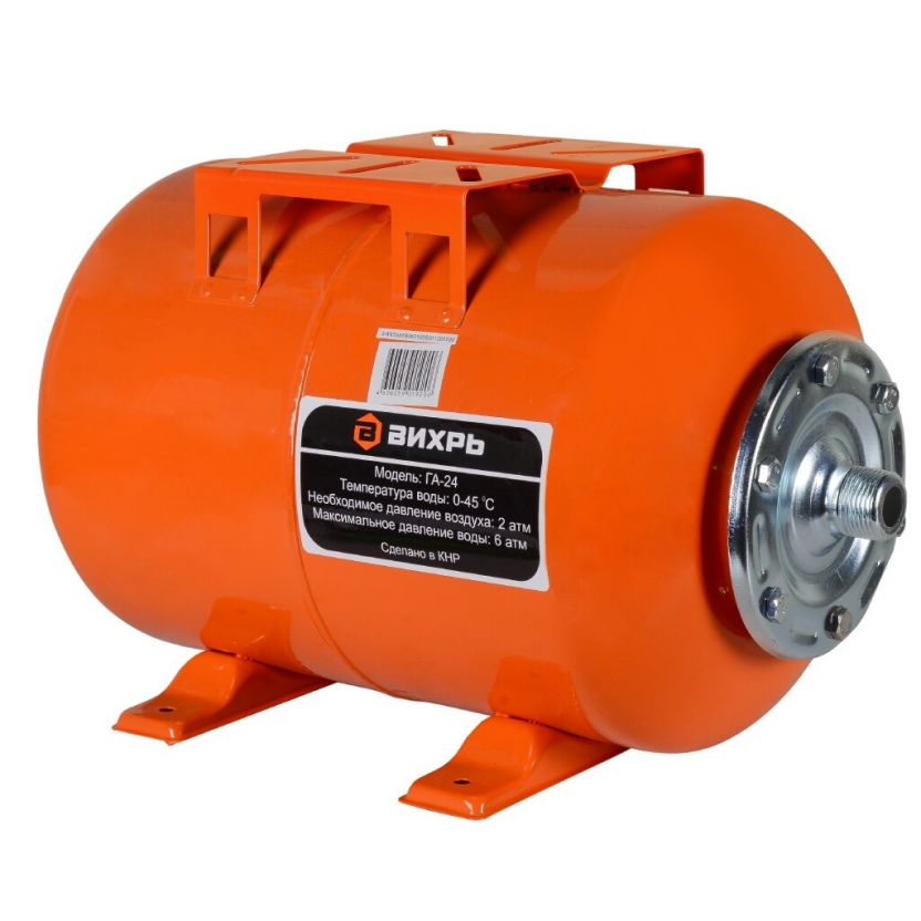 Гидроаккумулятор для насоса 1 '', 24 л, горизонтальный, сталь, оранжевый, Вихрь, ГА-24, 68/6/1