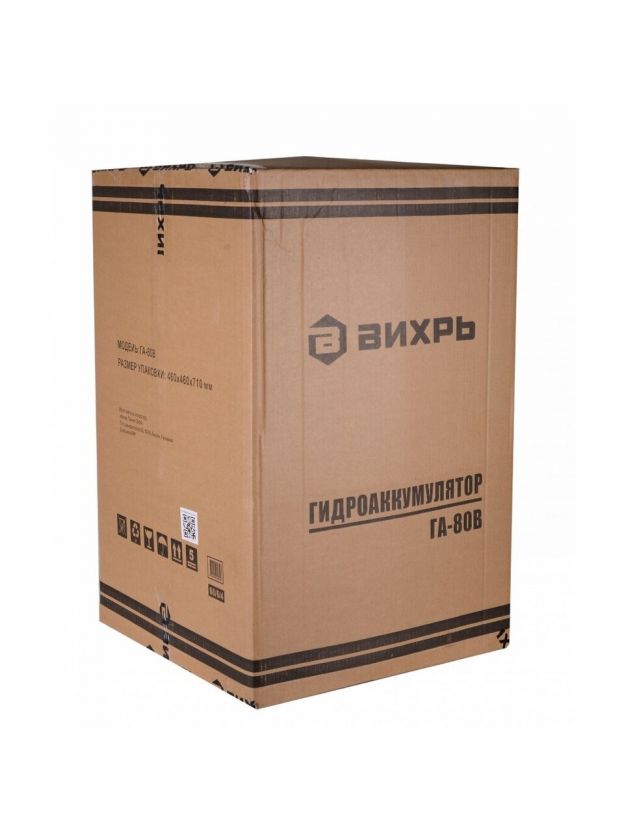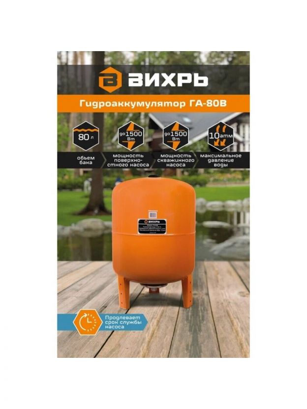 Гидроаккумулятор для насоса 1 '', 80 л, вертикальный, сталь, оранжевый, Вихрь, ГА-80В, 68/6/4