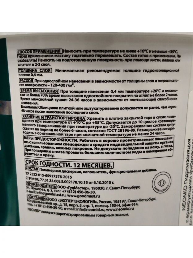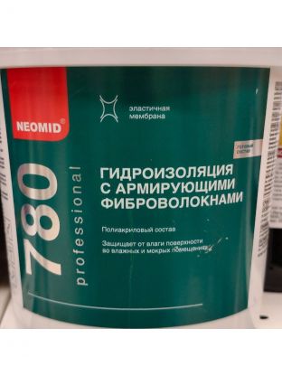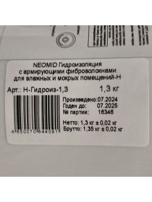 Гидроизоляция Neomid, полиакриловая, с армирующими фиброволокнами, 1.3 кг, для влажных и мокрых помещений, Н-Гидроиз-1,3