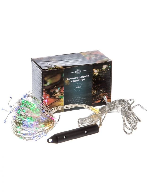 Гирлянда 180 ламп, 1.8 м, 1 режим, свет мультиколор, прозрачная, в помещении, сетевая, 10 проводов по 18 ламп, SYDA-041921