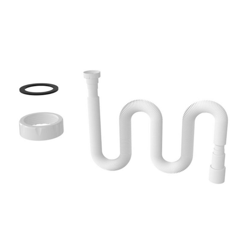 Гофра для сифона 1300 мм, 1 1/2"х40/50, полипропилен, с гайкой, плоская прокладка, Aquanova, 1335 (K116)