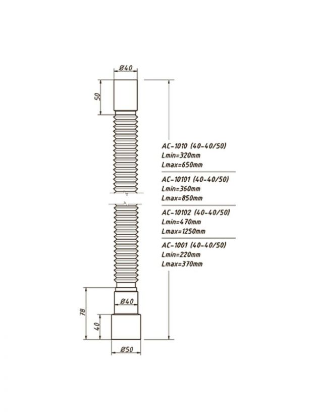 Гофра для сифона 370 мм, 40х40/50, полипропилен, Orio, АС-1001