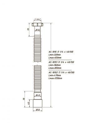 Гофра для сифона 650 мм, 1" 1/4х40/50, полипропилен, с гайкой, Orio, АС-1015
