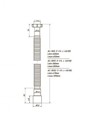 Гофра для сифона 850 мм, 1" 1/4х40/50, полипропилен, с гайкой, Orio, АС-10151