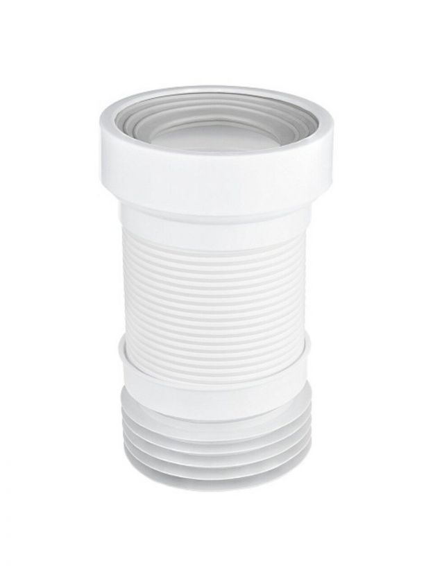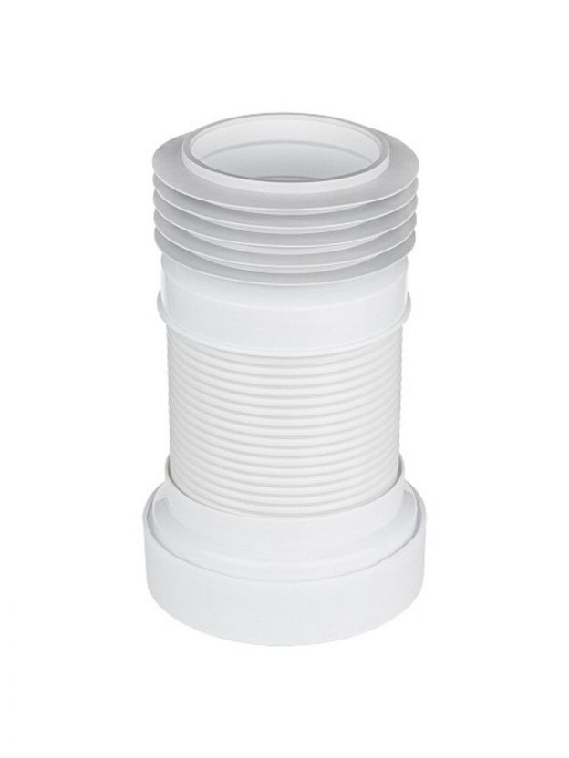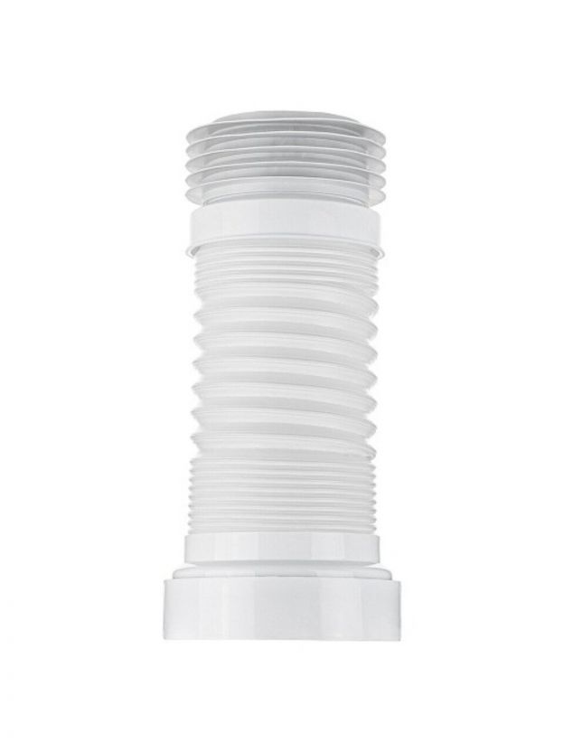 Гофрированный удлинитель для унитаза служит альтернативой фановым трубам, соединяя унитаз с канализационной трубой. В отличие от фановых труб, при монтаже гофрированного удлинителя не нужно заранее вымерять угол установки — благодаря гибкости материала его можно установить под любым углом.