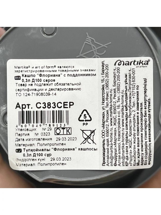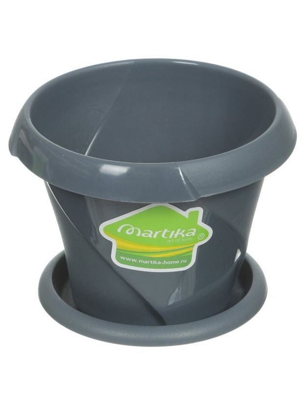 Горшок для цветов пластик, 0.3 л, 10х7.6 см, серый, Martika, Флориана, С383СЕР