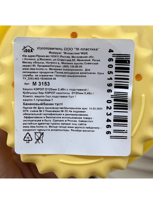 Горшок для цветов пластик, 0.75 л, 14х10 см, банановый, Idea, Кэрол, М 3154
